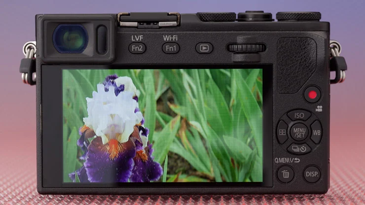 Сенсорный дисплей – 3 дюйма с разрешением 921 000 точек. Основной его минус – он не поворотный. Но если бы сделали поворотным, камера значительно бы прибавила в габаритах, а тут все в угоду миниатюризации. ЭВИ по современным меркам маленький, с достаточно низким разрешением - 1 166 000 точек и увеличением 0,92х. С учётом габаритов камеры, использование ЭВИ оправдано только в яркий день, когда основной экран начинает слепнуть на солнце или для того, чтобы экономить заряд аккумулятора. ЭВИ оснащён датчиком приближения. Так что, клавишей Fn2 (LVF) активируем только ЭВИ, а при помощи кнопки DISP задаём включение ЭВИ только датчиком приближения (когда подносим камеру к лицу) и все. Основной экран батарею не есть, а ЭВИ (на котором отображается вся необходимая информация) включается только по мере надобности. По моему опыту, при использовании только дисплея, камера способна отснять максимум 250 кадров на одном заряде, а при таком режиме – до 400. Так что - разница существенная.