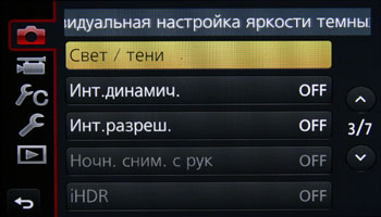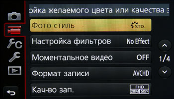 Взяв первый раз в руки GM5, не ожидаешь от такой «малютки» столь серьёзного функционала. Вообще, меню камер Panasonic с сенсорным управлением – одно из наиболее удобных и гибких, особенно если оно дополнено достаточным количеством механических органов управления. В GM5 используется графический интерфейс, состоящий из трёх частей: быстрое меню, вспомогательное всплывающее меню и основное меню. Основное и быстрое меню реализовано практически всеми производителями, а вот всплывающее - "фишка" Panasonic.