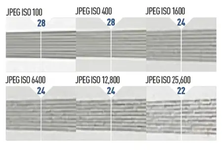 Диапазон светочувствительности - от ISO200 до ISO25600 (с возможностью расширения до ISO100 для съемки в JPEG). Причем, если использовать ручной выбор светочувствительности, то будут доступны только кратные значения (400, 800, 1600, 3200 и т.д.), но в автоматических режимах, камера использует значительно больший диапазон значений (с шагом 1/3 ступени). Предельным пригодным для использования можно назвать значение ISO3200. На ISO3200 уже появляются шумы, есть потеря деталей, но нет сильной деградации цветов. Более высокие значения, особенно ISO25600, уже мало пригодны для использования. Скачать примеры фотографий, сделанных с разной светочувствительностью (ISO) для самостоятельного детального изучения можно по этой ссылке.